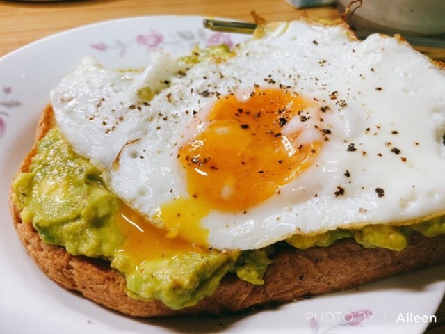 烤土司稍微放涼一點後,塗上調味好的酪梨醬,放上太陽蛋就是可口的酪梨太陽蛋烤吐司拉!!