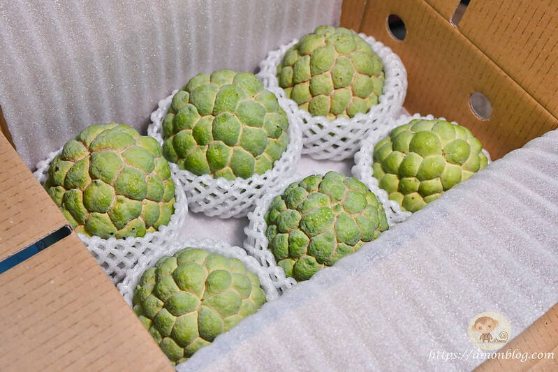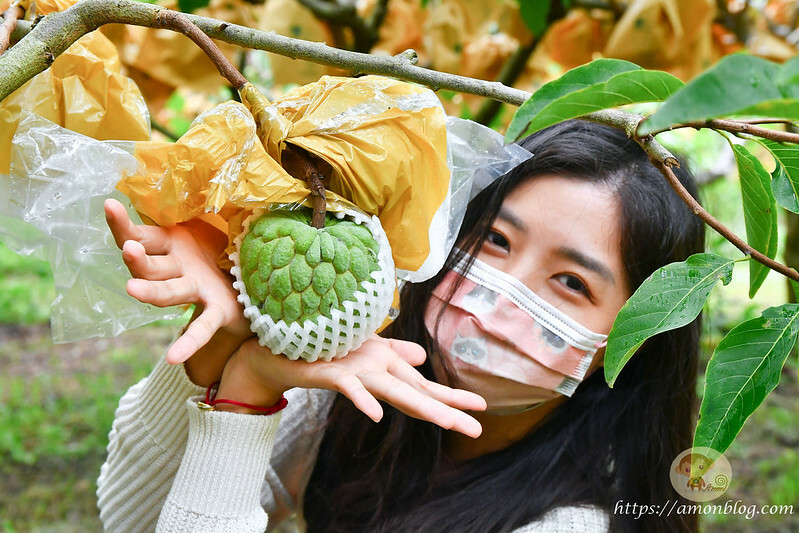 這次來的季節是遇上了大目釋迦已經可以採收,所以就在果園內挑選了幾顆果實飽滿的釋迦帶回家享用拉,帶回家後季德要放在通風處,等到外層麟目變軟就可以吃嚕,放越久會越甜XD。