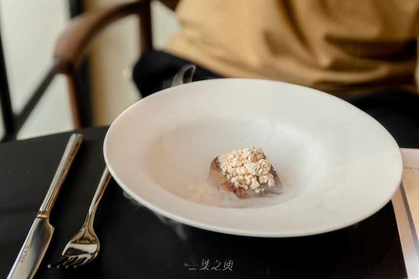 鴨肝以液態氮的方式呈現,蠻有趣的;實際入口和那些煙霧一樣飄渺。