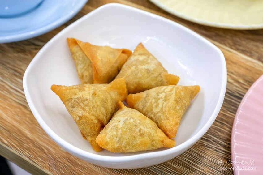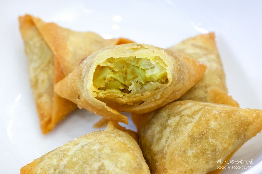 外觀呈現可愛三角形的印度三角餅,口感非常的酥脆,裡面包著香氣濃郁咖哩醬和軟嫩的馬鈴薯塊,相當涮嘴的炸物,而且不會油膩呢!