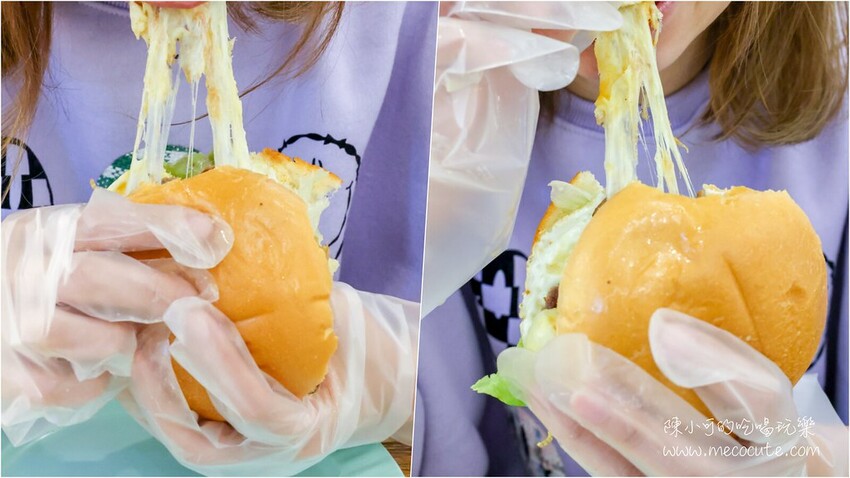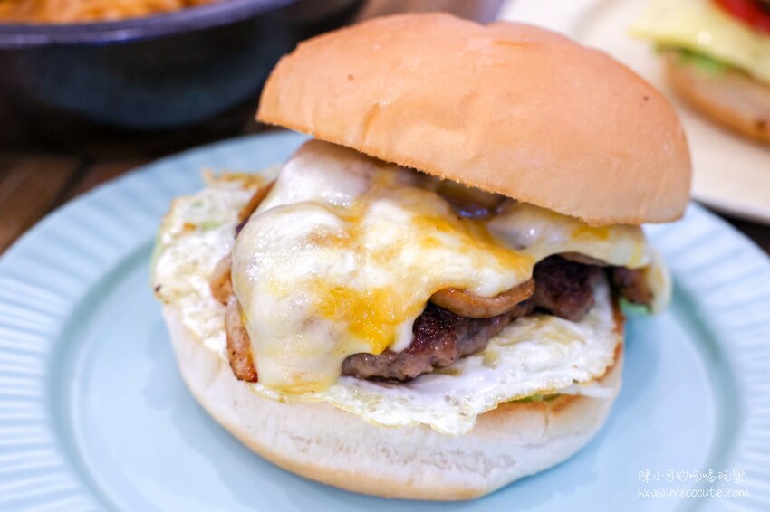 加了起司絲的蕈菇厚牛肉堡也是人氣商品,上桌就看到熱融邪惡的起司,滿滿的起司絲加上炒蕈菇、半熟蛋和牛肉,光視覺就相當誘人,大口咬下更是美味,而且還有牽絲的效果。