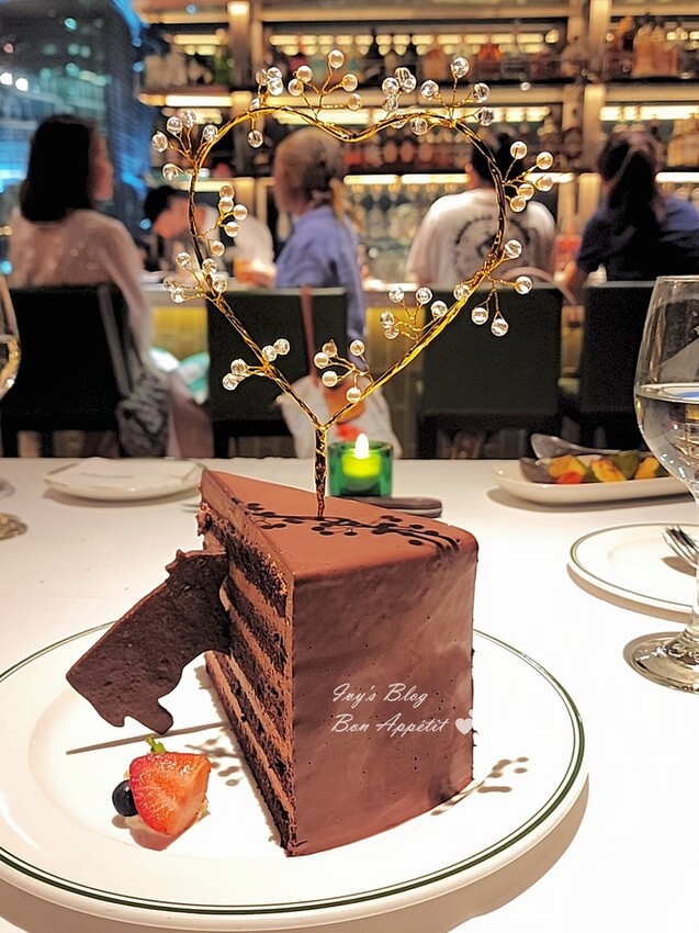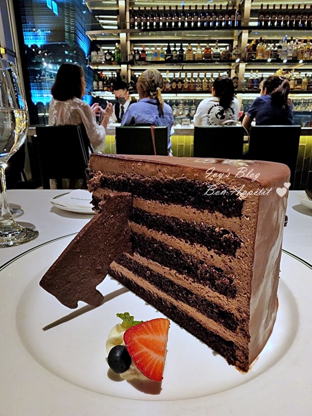 雖然巧克力蛋糕本體並不綿密,搭配上濕潤的奶油夾層和柔滑的甘納許,或許正是甜點師傅想要表達的口感