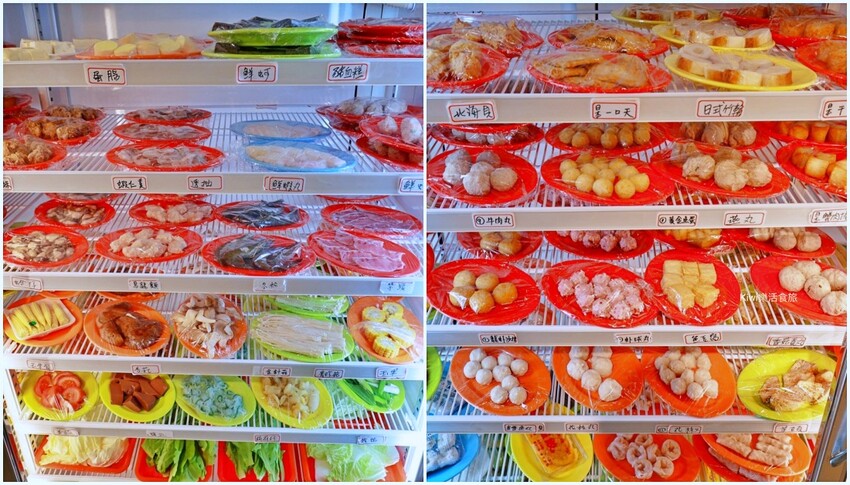 走近一看,天啊!食材種類超新鮮,有火鍋類、蔬菜類、鮮切肉類、限定款當季海鮮,還有內行人必點排骨酥、廣海自製蝦仁羹、養顏聖品花膠,還有基隆特有美食蛋腸、日式竹輪跟三記魚餃、當季海鮮這些通通有,50多種食材任你挑選,來自助式石頭火鍋就是要吃好吃滿。