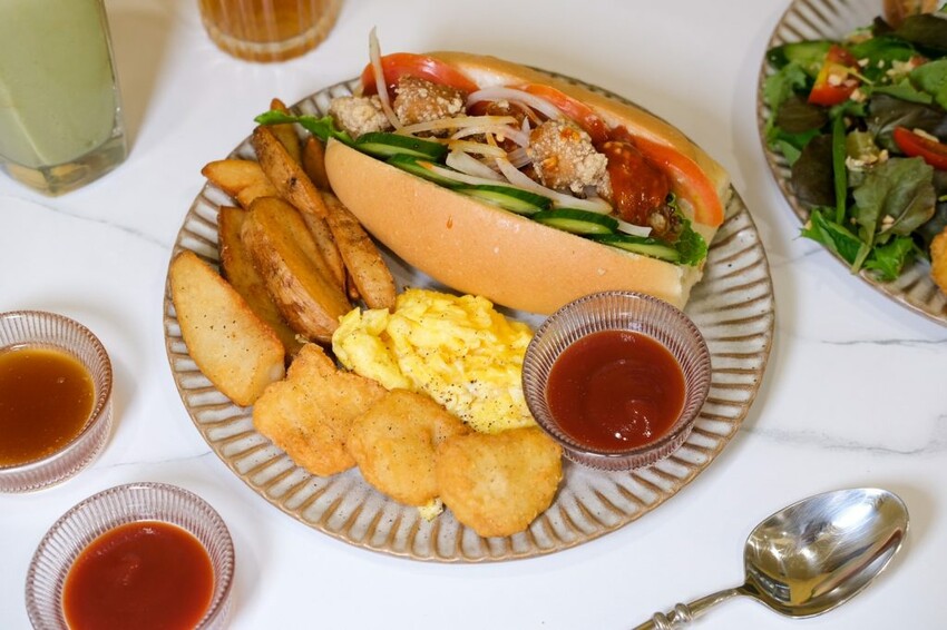 【嚐再食物所 Brunch&Coffee】以手作的料理為主打,供應漢堡、潛艇堡、捲餅、吐司、烤餅、烏龍麵….等,可以單點也可以加價升級成套餐,餐點品項十分豐富多變化。