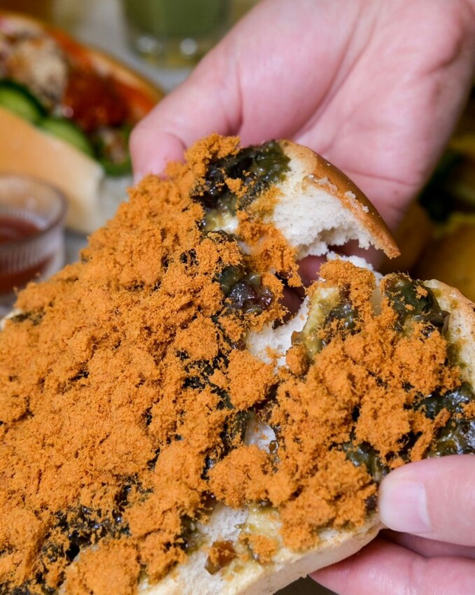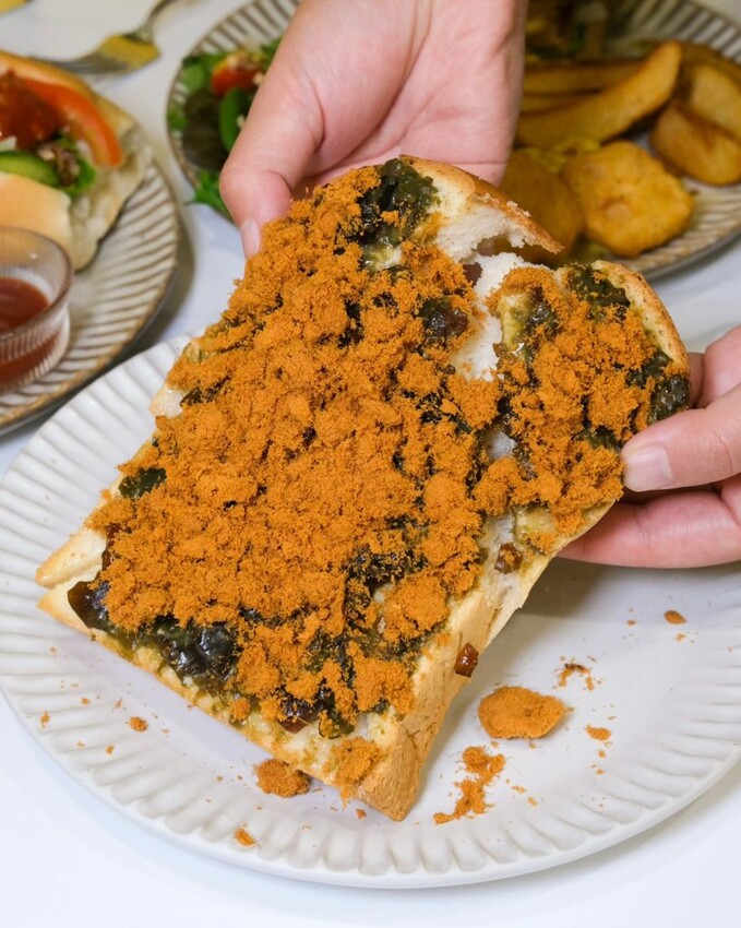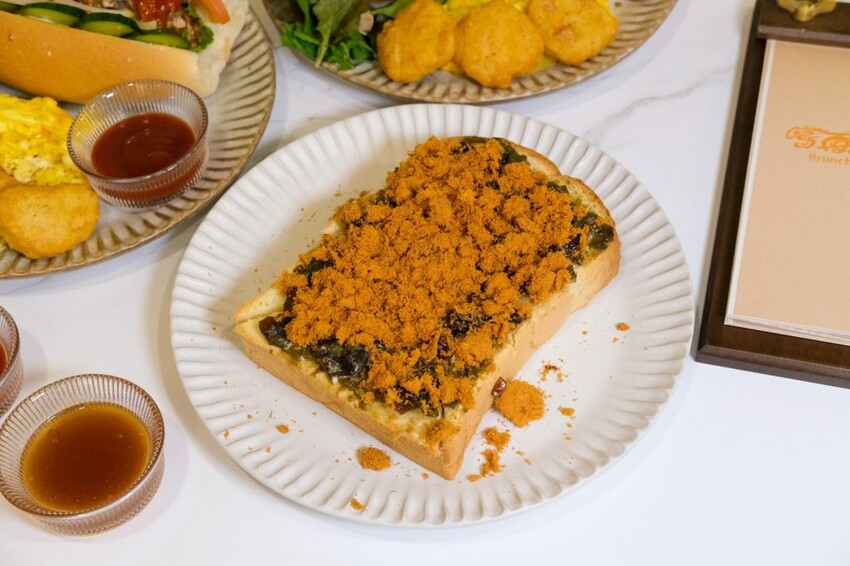 ▼現烤的熱呼呼皮蛋肉鬆吐司,以柔軟的山型吐司為基底,搭配松花皮蛋與台灣豬肉鬆的組合,打造出與眾不同的創意吃法,皮蛋的香氣與鹹香肉鬆意外合適,伴隨著底部的美乃滋帶來甜香滋味~