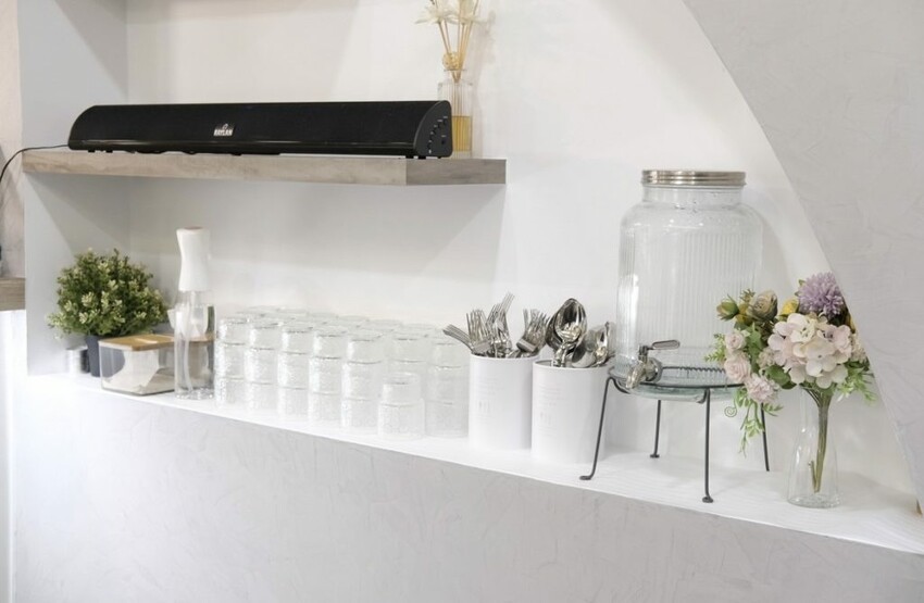 ▼【嚐再食物所 Brunch&Coffee】的自助區提供飲水和餐具等,讓客人能夠自行拿取使用,內用不會額外收取服務費。