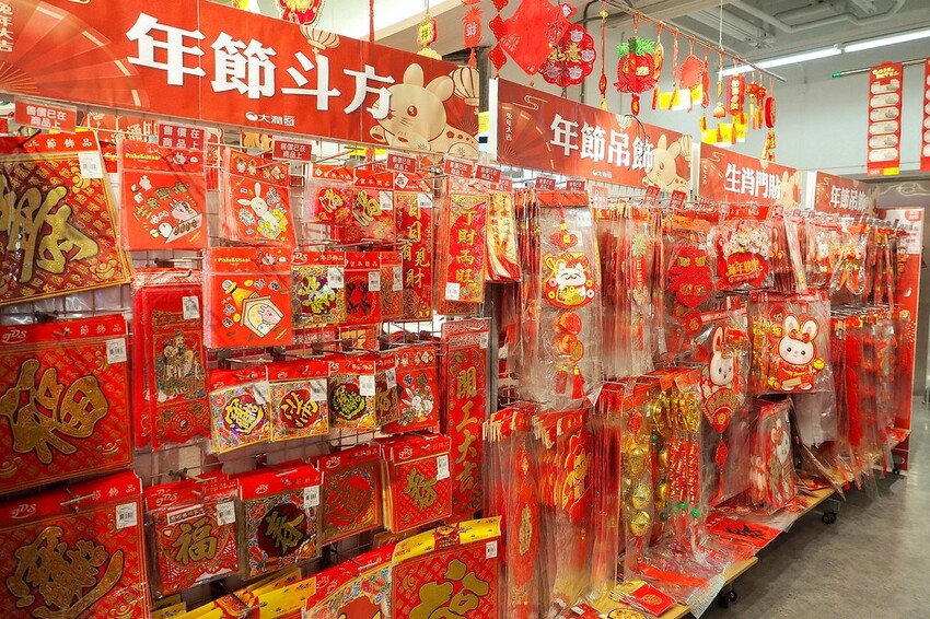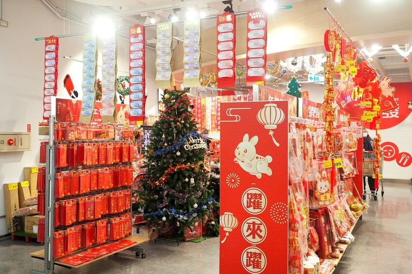 停好車走到賣場入口馬上就能感受到濃厚的過年氣息
