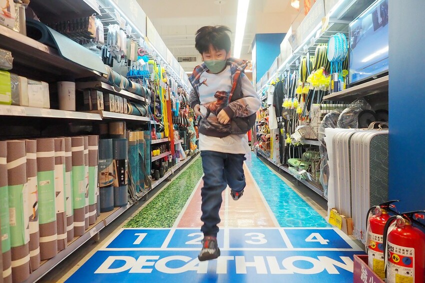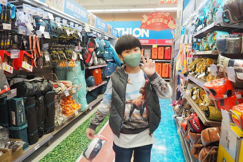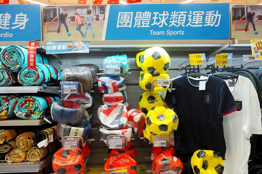 桌遊區旁邊是大潤發和迪卡儂合作的運動用品專區