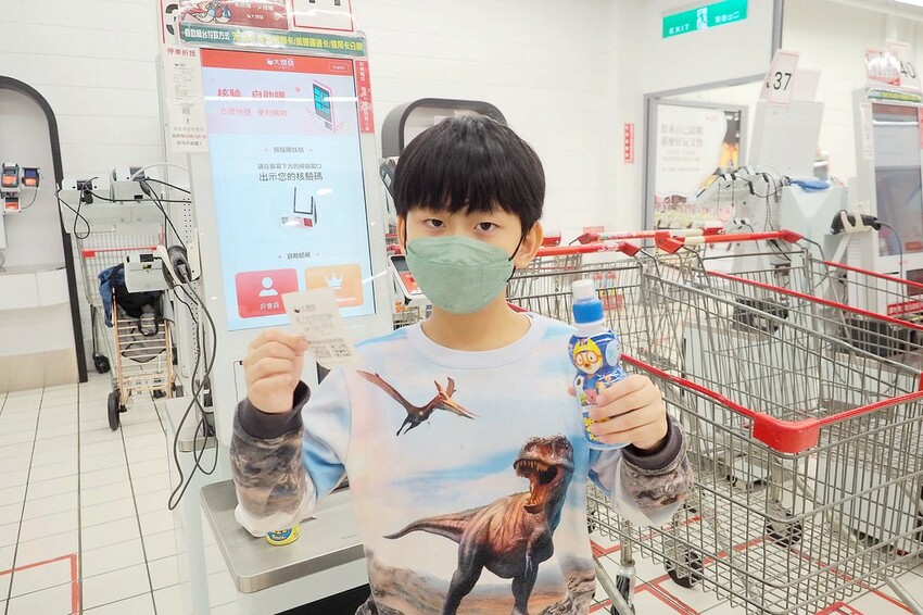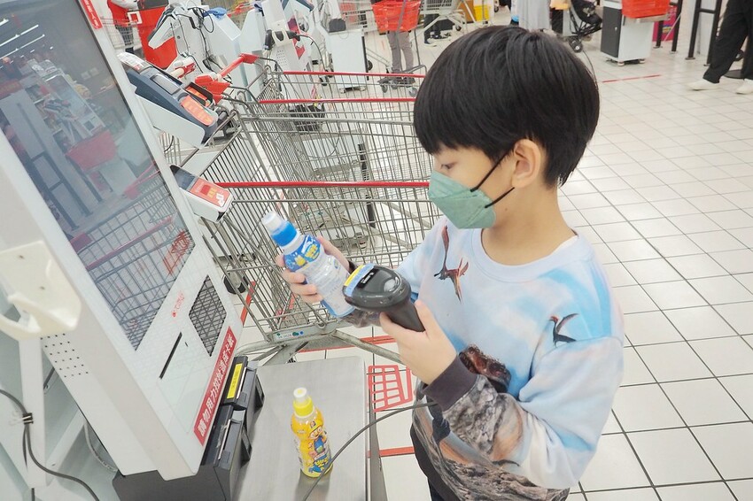 這次也讓球哥試著自己結帳~某小孩直呼超好玩呢!!!