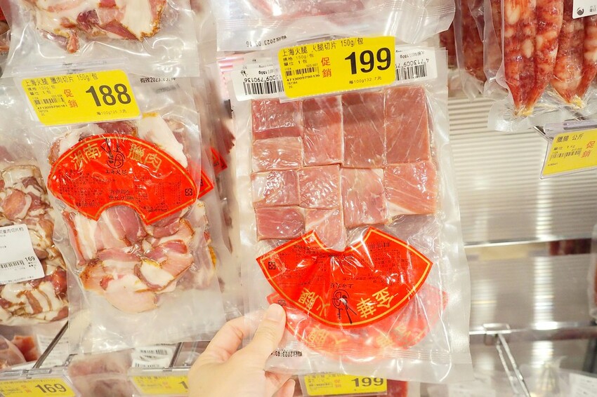 各式各樣的臘腸.臘肉.火腿直接全部幫你排好