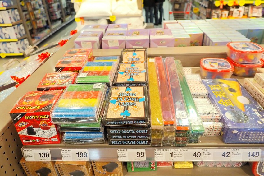 各式各樣的桌遊和麻將周邊商品一字排開