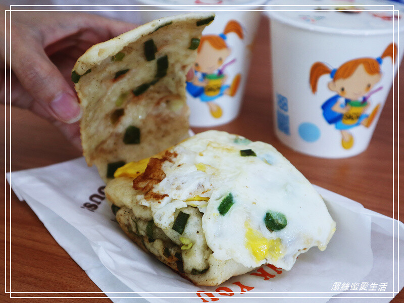 手工現捍蛋餅份量還不少,剪成了兩小條,吃起來帶著Q勁還不賴,只是不知是否因為人潮很多,阿姨們煎得很匆忙,覺得稍油膩一些。