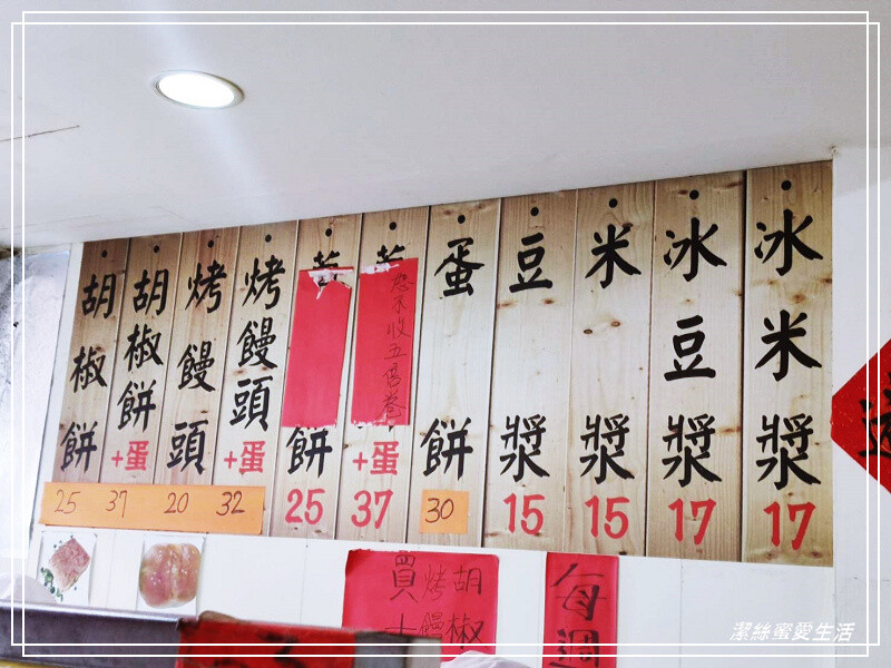 主食單純只有三樣:胡椒餅/烤饅頭/蛋餅,飲料則是豆漿和米漿,而冰飲竟然還貴2元不知是怎麼計算😆。