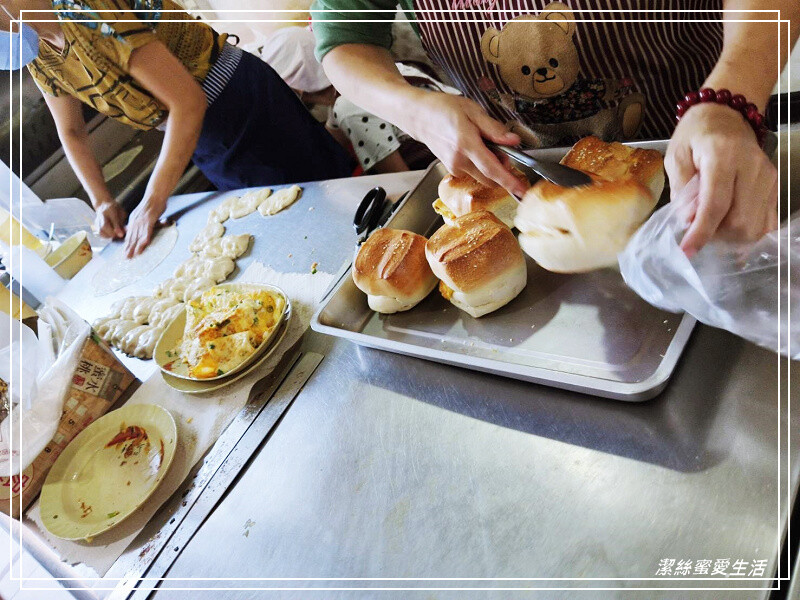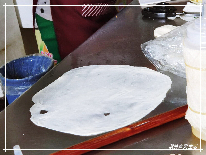 客人絡繹不絕,阿姨們的手也沒閒著,全是手工現做,有忙著捍餅皮的,還有忙著包裝~若有空閒會先事做起來放在旁邊保溫著等,所以只稍等一下下就拿到餐了。