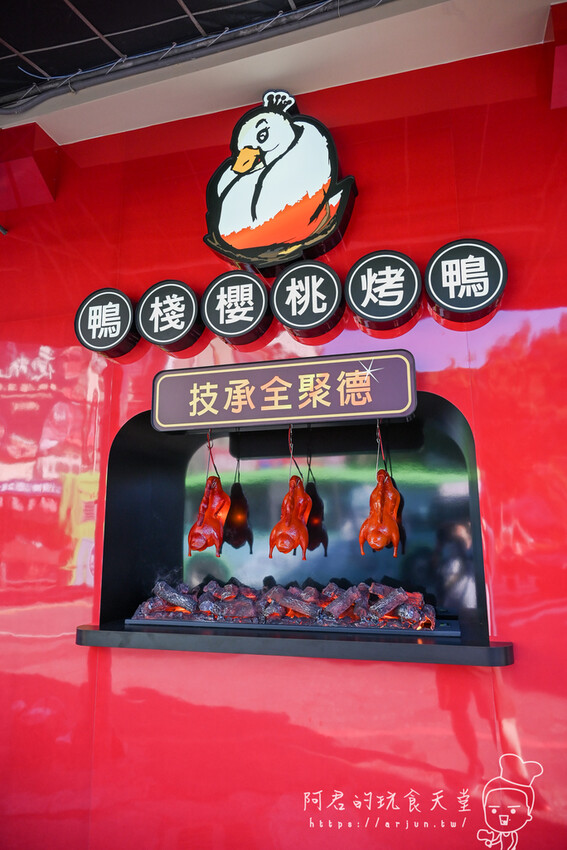 門口居然還有設一個烤鴨打卡牆,是三隻烤鴨在柴火上面烤的景,真是太有創意啦!