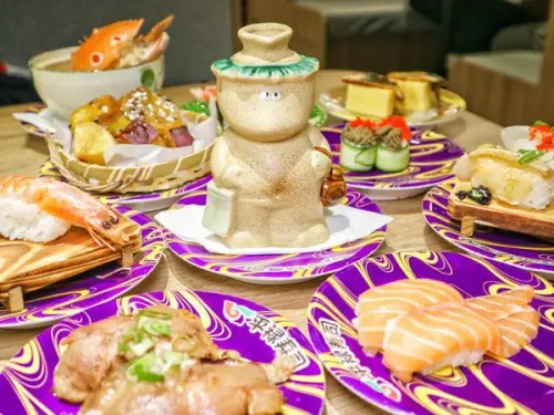 每盤壽司都有加蓋,蓋子取下後放桌上,服務生看到會收回去