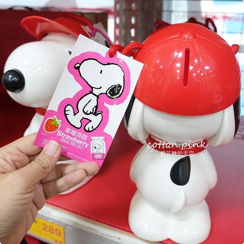 今年最新推出的史努比草莓蒟蒻果凍桶也是可愛度爆表,立體的造型也很值得收藏耶! 而且裡面的蒟蒻果凍都是最方便的袋裝~吃起來不沾手,吃完之後還能當作存錢筒喔!