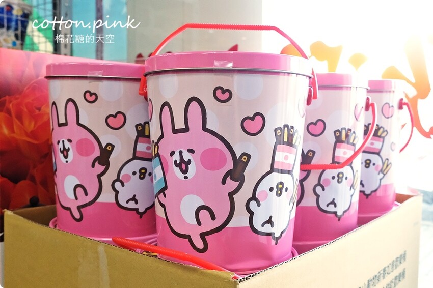 粉嫩嫩的卡娜赫拉綜合餅乾桶整個超療癒, 剛好遇上今年是兔年送這一桶餅乾桶也是很應景,裡面有多種口味的金磚玉米棒~很唰嘴喔!