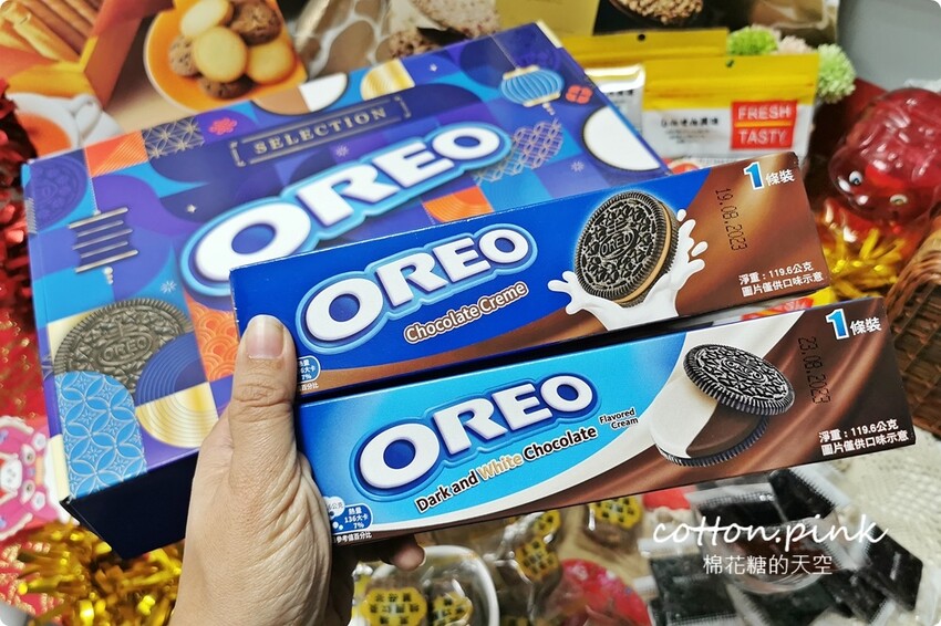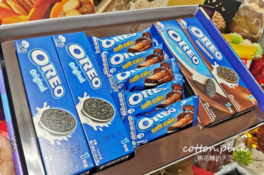 今年最新登場的Oreo禮盒~打開裡面總共有兩條原味的巧克力餅乾、一條巧克力夾心、一條黑白夾心還有Oreo的蛋糕喔!喜歡巧克力甜點的朋友不能錯過這一盒~