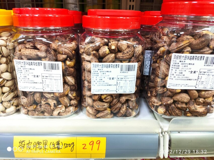 現場也有帶皮的腰果有小包裝也會有罐裝,這個最近也超多人在搶!超大顆粒超高品質~這價格真的太甜了啦!另外還有帶殼的核桃也是很多人喜歡的喔!