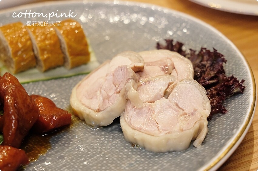 一開始就先來看看開胃三彩碟~上面是三款店裡的招牌開胃菜,每天提供的菜色會隨主廚準備的有點小調動,這天我們吃到的是口感又嫩又細的醉雞腿,酒香和雞腿的甜味相得益彰~
