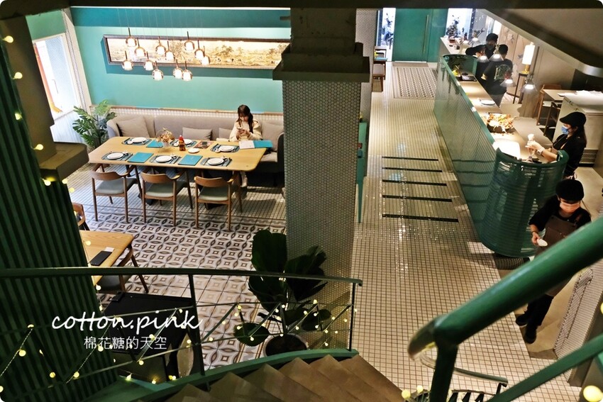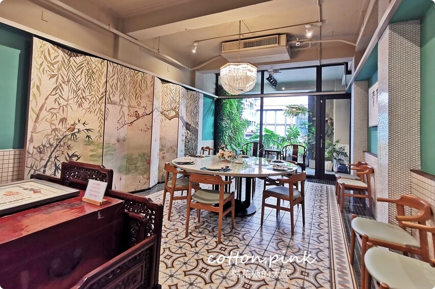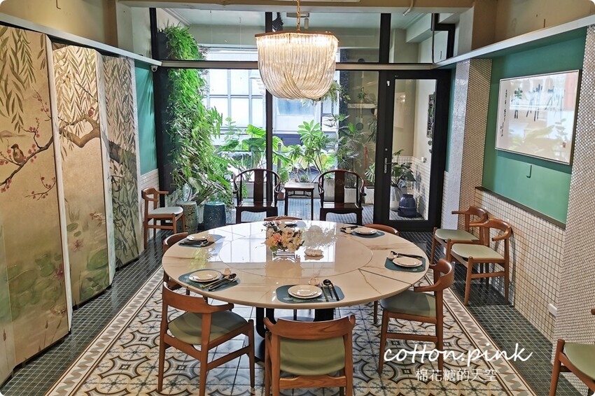 二樓在靠近台灣大道露台處有個半開放的包廂區,這裡只安排了一張大圓桌~很適合家庭小聚餐或是招待重要客戶,包廂裡美麗的吊燈、露台上滿滿的綠意~甚至有時還會掛上鳥籠有清脆的鳥鳴相伴。