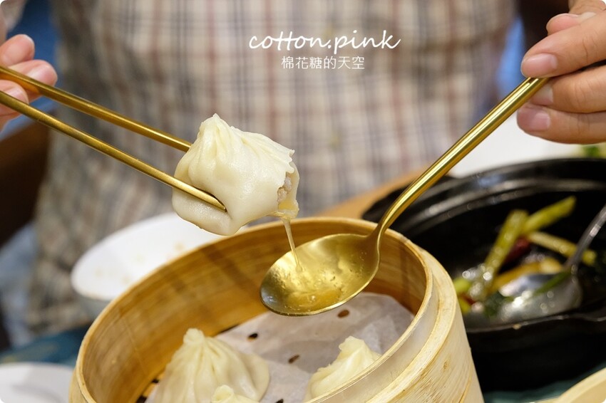 柳梢青的小籠湯包用薄薄的外皮包住內餡和鮮甜的湯汁,隨桌還會附上調好的醬汁方便大家搭配,內餡紮實豐富帶著甜味~咬開真的有湯汁大家要小心燙口阿!