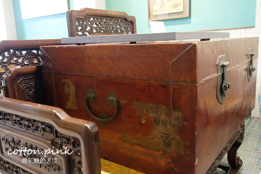 用來隔出包廂空間的這一卡大皮箱也是很有來頭的,這是當初家族隨著國民政府遷台帶著的行李~旁邊還有阿太的名條和船運的封條,選擇放在新店中間位置也是要再再提醒自己不能忘本!