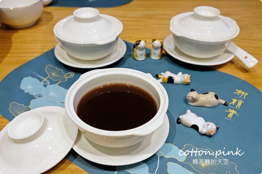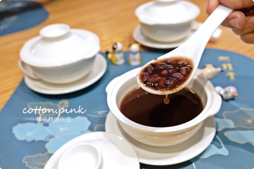 用完餐之後服務人員為我們端上甜湯,這是在菜單上面沒有寫到的, 特別是在冷冷的天可以來上一碗熱熱的紅豆紫米甜湯真的非常舒服!