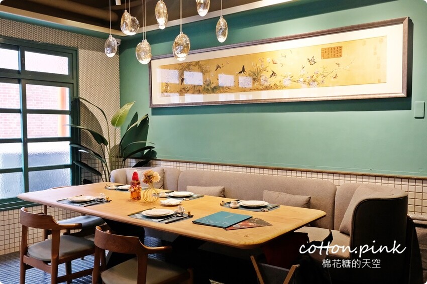 柳梢青店如其名~餐廳的裝潢大量的使用柳樹的青綠色,老闆跟我們說當時也參考了陸劇延禧攻略的荷花池劇照~真的超美的,店裡還特別掛上故宮博物院授權複製畫~特殊的印刷方法就好像原版畫作真的掛在牆上,裱框的方法卻使用比較新潮的樣式,老件新裝飾~真的給人很不一樣的感覺。