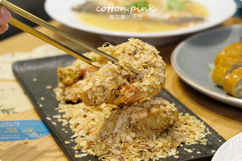 海草蝦有雙椒、麥片、避風塘三種口味可以選擇,就來一份阿季思念的麥片蝦來解解饞,上面的麥片也是主廚特製的~吃起來口感比一般的更輕盈,滿滿奶油的香氣還帶著甜味、辣味~搭配尺寸大口感又脆的大草蝦真的超棒的!
