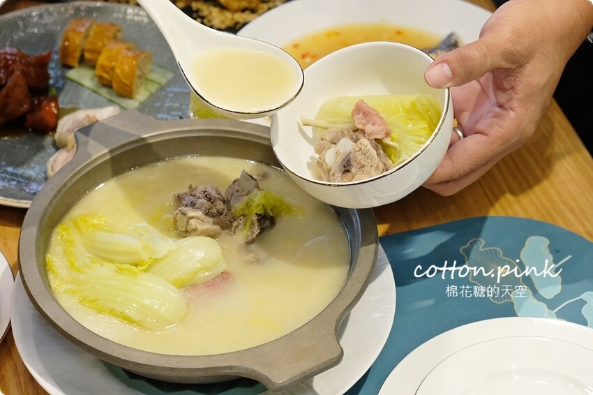 最後再置入土雞肉、芽白大白菜~用料很豐富,湯頭喝起來風味很多層次~看起來厚重喝起來卻很清爽,最後會留下淡淡的甜味在嘴裡迴盪,真的會一口都不想浪費的耶!剩下的我通通都要打包回家~