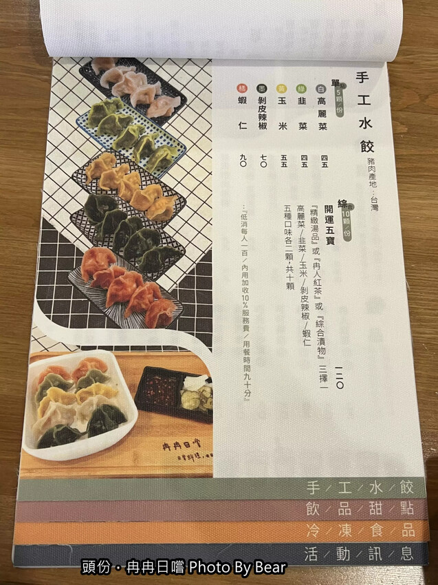 水餃一份多為五顆(價格$45~$90),也有一款開運五寶,一份共十顆且附湯或紅茶二選一