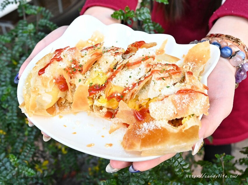 一上桌就聞到濃濃的起司香氣,蛋餅外皮煎的相當酥脆,入口起司香氣更加濃厚,裡頭的薯餅酥脆不油膩,不過糖糖個人還是比較愛起司片搭薯餅的口感