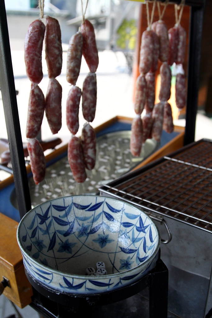 大門口放了一台兒時熟悉的東西...,一想到烤香腸就想到彈珠台和骰子,這是以前香腸攤販都常看到配備,可以跟老闆小賭一把,說不定還會多贏幾條呢!