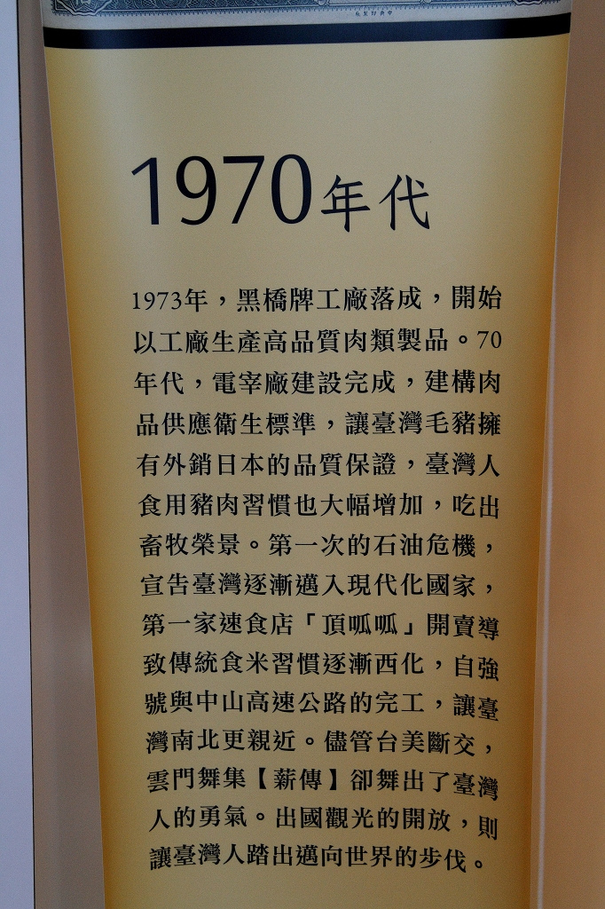 接著來到三樓,介紹黑橋歷史。一開始的店家位於臺南運河的烏橋販賣香腸打響名號,最後才取名黑橋牌。