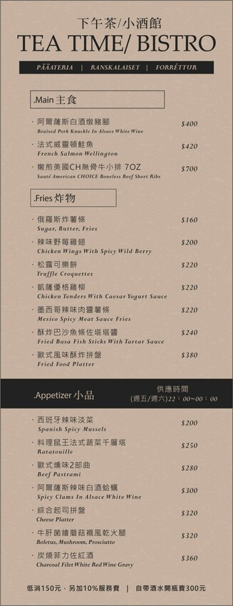 餐點有午餐、晚餐、下午茶,每個時段來餐點供應不太一樣