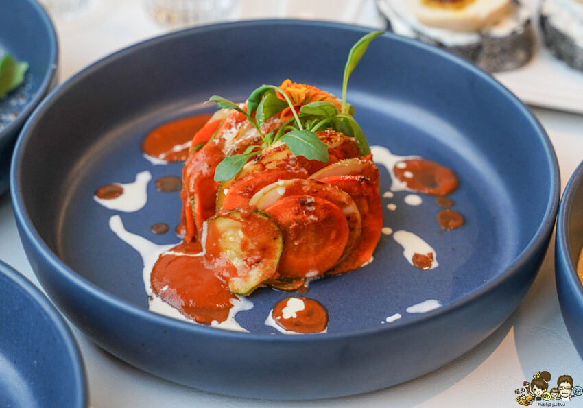 這道菜色就是取決於電影料理鼠王的經典佳餚,將蔬菜都切片整個細膩的擺盤