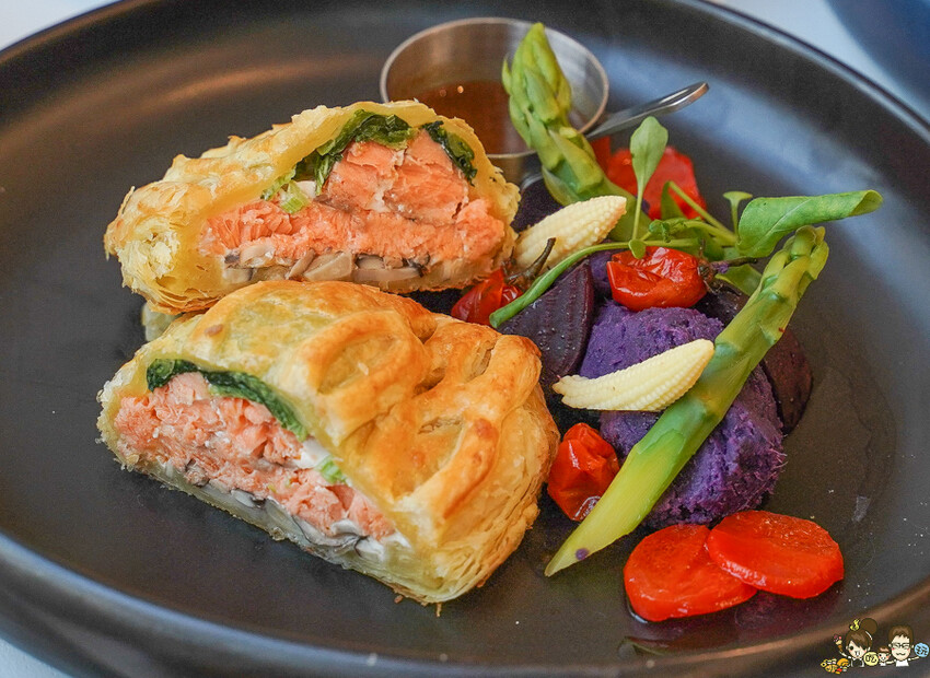 一般市面上都是威靈頓牛排,這裡使用的一整塊大鮭魚