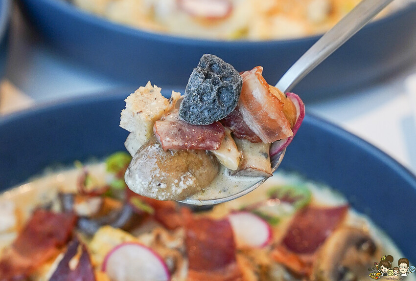 口感相當豐富,還有法式麵包丁會吸附醬汁,咬下軟嫩濕潤帶有咀嚼層次口感