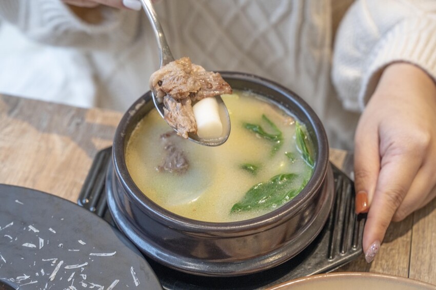 「金孫韓廚」的冬季新品雪濃湯也是必吃的一道,將蒜片、糯米椒、牛肋條、年糕、青江菜和鍋粑餅入湯,湯底也非常好喝爽口,在冷冷的天氣裡喝上一碗實在太幸福啦!!