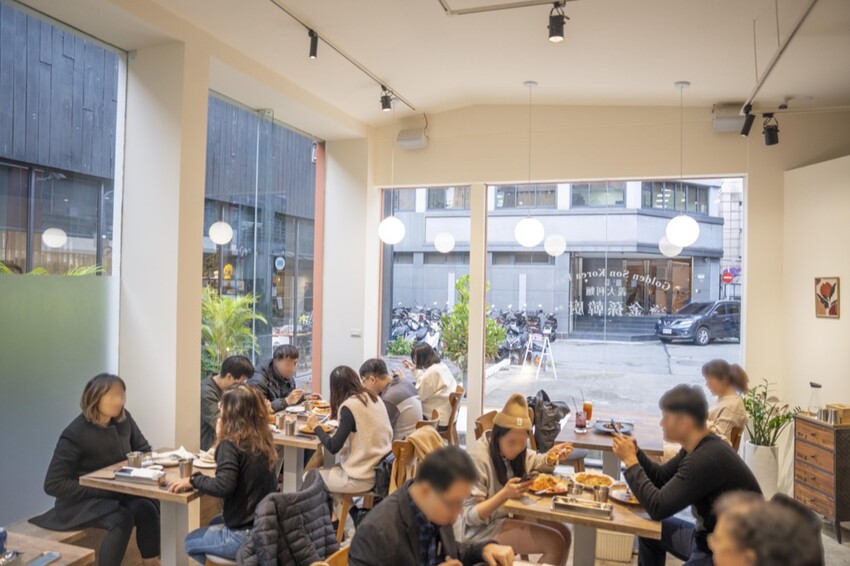 「金孫韓廚」真的太美了,以橘色和白色為設計概念,搭配上大面的落地窗,讓人瞬間就有走在韓國街頭的感覺,也吸引不少人上前拍照!