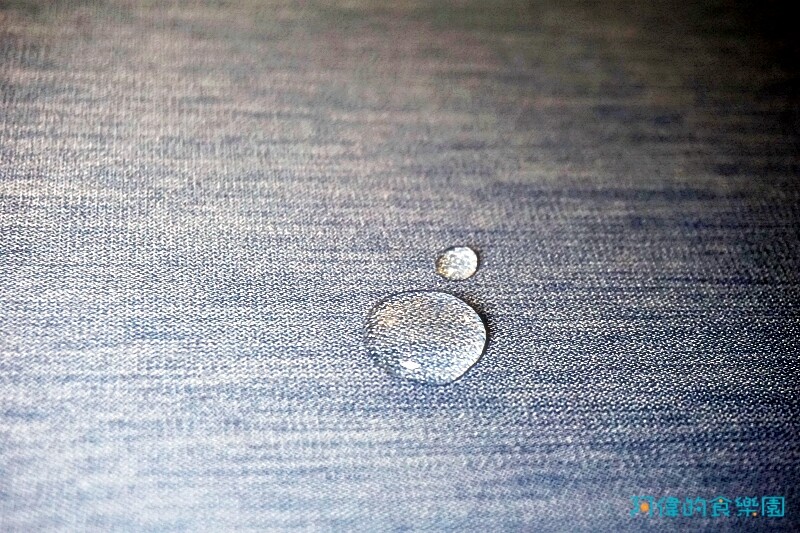 原來這塊面料是不吸水的,水滴在上面滾動不會被吸收,因此特別好清潔。