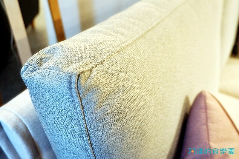 趕快試坐一下,想像在家裡靠在一旁看書,坐墊、靠背的支撐力強,有種被包覆的感覺。