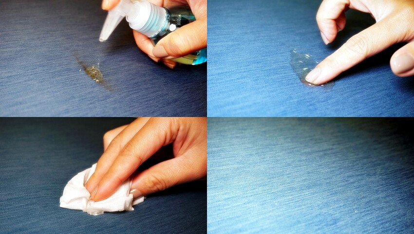 家配師跟我說這塊涼感布很容易清潔,立刻拿出一小瓶醬油滴了幾滴。我心想如果是一般布料肯定洗不掉啊!結果她先拿衛生紙擦過,最後還留下一些痕跡,但可別以為就只能這樣,接著往下看…