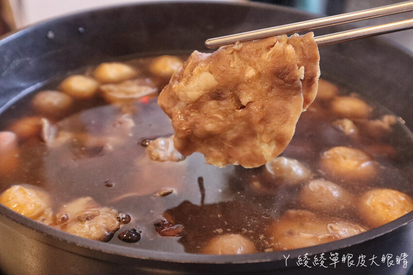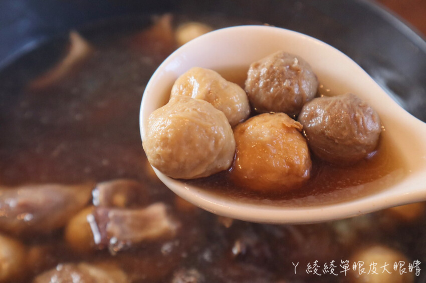 鍋裡滿滿都是火鍋料,我特別喜歡鴨肉丸、小貢丸,另外還有米血、凍豆腐、黃金魚蛋、鑫鑫腸等等。