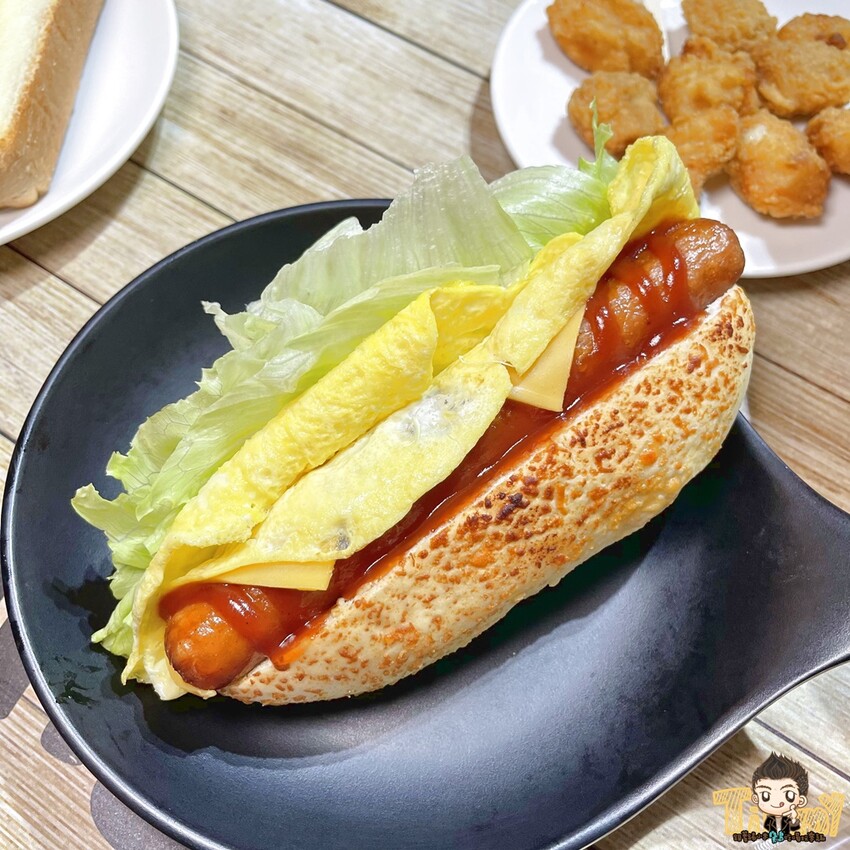 這也是他們店內的熱門商品美式香腸軟法 (60元) +蛋15元、起司10元。
