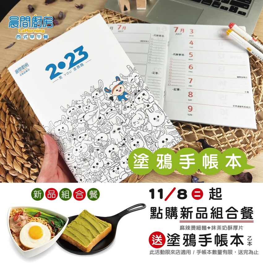 點購新品組合餐:「麻辣燙細麵」+「抹茶奶酥厚片」,即送限量晨間廚房2023年塗鴉手帳本