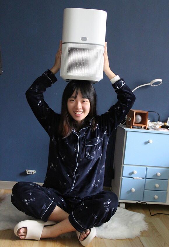 雖然白色這款主要不是吸附異味,但是針對阿婗房間太多書籍堆疊與雜物所產生的悶味卻很有感,開啟不用多久,空間更清爽之外,各種悶味也會隨之消除,婗的房間差不多是3~4坪的空間,這個效果還蠻好的,偶爾空間太悶感的話,婗媽也會搬到客廳,雖然空間大了些,但仍可感受到他對空間中的氣流產生作用,不會比大台的差唷!可以說是小兵也能立大功。