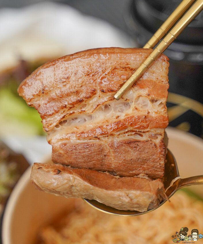 肉質緩嫩帶有豬本身的甜味,油花香氣很邪惡、不擔心噁爛